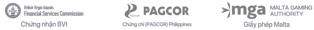 - Giấy phép hoạt động cá cược trực tuyến từ PAGCOR (Philippine Amusement and Gaming Corporation)